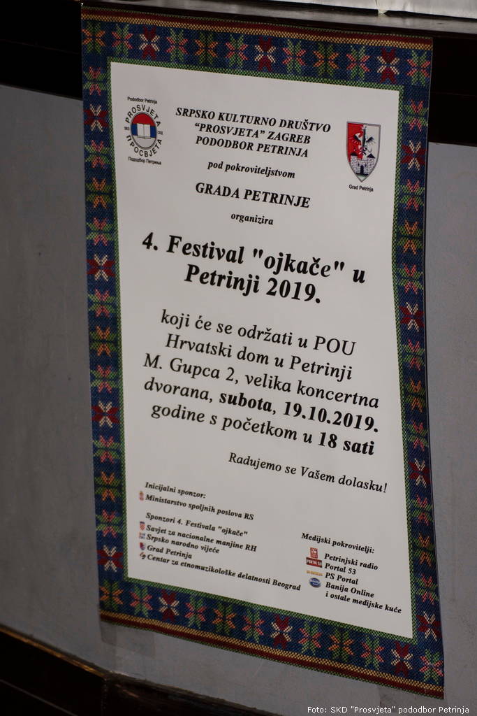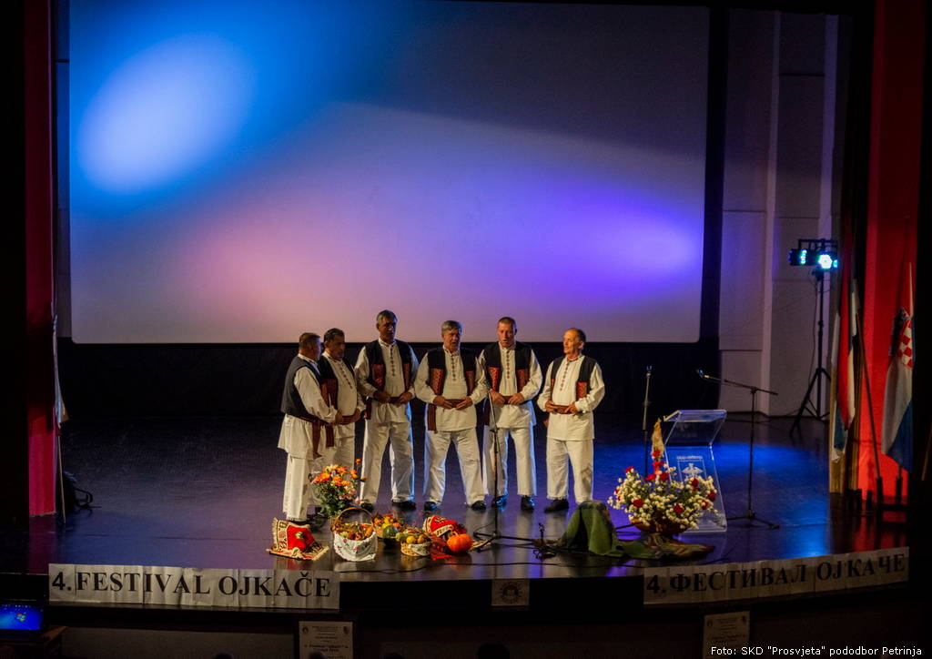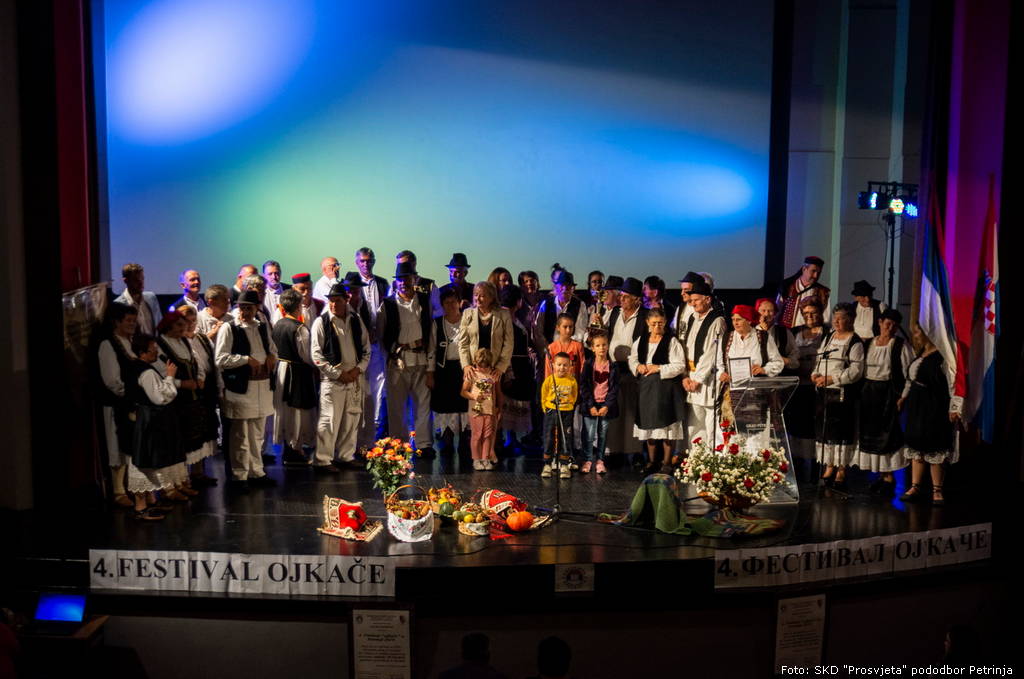 PETRINJA - Na četvrtom Festivalu ojkače, održanom u subotu u Petrinji, nastupilo je 120 članova iz pjevačkih grupa iz Hrvatske, Bosne i Hercegovine i Srbije, koji su pjesmom i plesom predstavili ojkalicu - ugroženu nematerijalnu baštinu pod zaštitom UNESCO-a. Iako je riječ o najstarijem obliku dvoglasnog pjevanja na ovim prostorima koju izvode i Srbi i Hrvati, protiv Festivala ojkače u organizaciji petrinjskog pododbora SKD "Prosvjete" proteklih godina prosvjedovale su veteranske udruge. Usprkos plakatima koji su u subotu bili polijepljeni po centru Petrinje, s pozivom "Hrvati, Hrvatska vas zove. Petrinjci, zaustavimo mirnim protestom i hrvatskom pjesmom četničko orgijanje", ovogodišnji festival, koji je otvorio predsjednik SDSS-a Milorad Pupovac, prošao je bez incidenata.