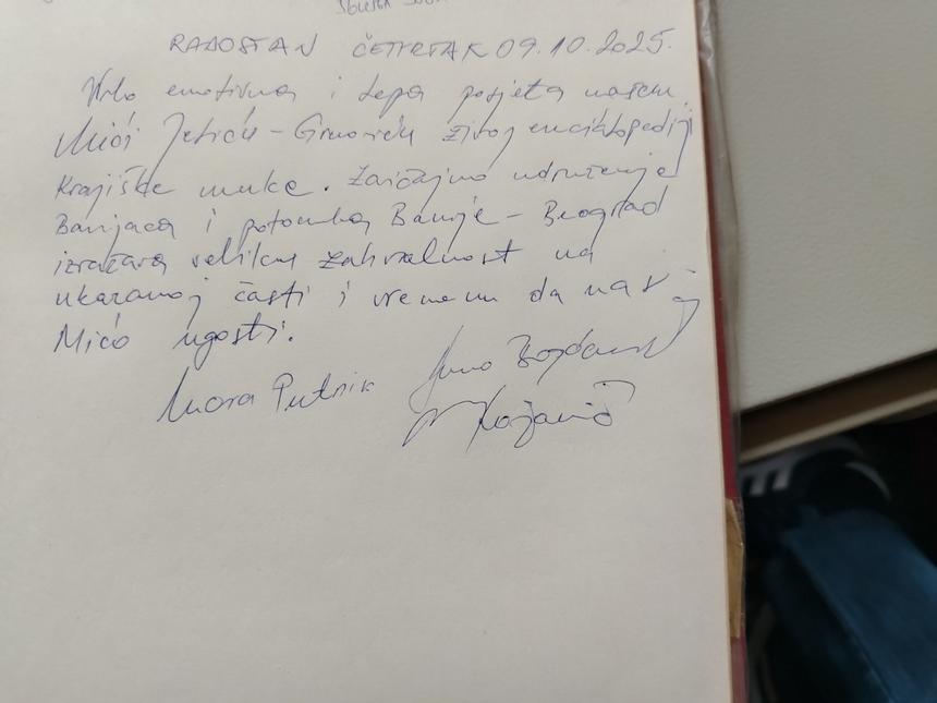 Predstavnici Zavičajnog udruženja Banijaca, potomaka i prijatelja Banije iz Beograda posjetili su juče u Vladimircima poznatog banijskog književnika,režisera, pisca, slikara i patriotu Miću Jelića Grnovića. Bila je to prilika da se Miroslav Kovjanić, Đuro Bogdanović i Mara Putnik iz udruženja još jednom zahvale za sve što Mićo Jelić Grnović radi za očuvanje banijske i krajiške kulture.